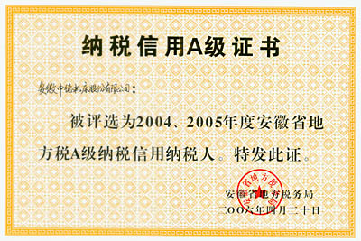 我公司繼被省地稅局評(píng)為“2001-2002年度省地稅A類納稅信譽(yù)等級(jí)單位”后,近日又被省地稅局評(píng)為“2004-2005年度安徽省地方稅A級(jí)納稅信用納稅人”。這是省地稅局對(duì)納稅人給予的最高榮譽(yù),也充分體現(xiàn)了省地稅局對(duì)我公司近年來(lái)在稅務(wù)登記、納稅申報(bào)、稅款繳納、財(cái)務(wù)管理、納稅資料報(bào)送、發(fā)票管理等方面工作的認(rèn)可。