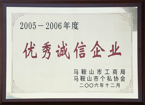我公司獲市工商局“05-06年度優(yōu)秀誠信企業(yè)”稱號