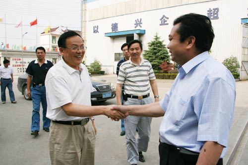 在鄭長玉董事長的陪同下,吳副書記等一行參觀了生產(chǎn)車間和成品車間并在公司會議室進行了座談。在了解了我公司的發(fā)展歷程、生產(chǎn)銷售、人才培養(yǎng)等情況后,吳副書記等人對公司近年來所取得的經(jīng)營成績給予充分肯定。他指出,工業(yè)是民族經(jīng)濟的支柱,尤其是機械設備工業(yè)是基礎中的基礎。在競爭日趨激烈的市場環(huán)境下,企業(yè)競爭力的提升關鍵要是靠人才的培養(yǎng),關鍵是要靠科技創(chuàng)新能力的提升和不斷完善的服務體系。同時吳副書記還指出,企業(yè)要發(fā)展必須實施“走出去”戰(zhàn)略,參與國際經(jīng)濟競爭與合作,努力開拓國際市場,提高國際市場占有率,在國際分工與合作中取得有利地位。