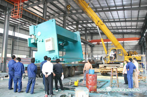 2008年5月7日下午,我公司自主研發(fā)的500噸6米(產(chǎn)品型號:WC67Y-500/6000)大型液壓板料折彎機下線并進入交付運輸環(huán)節(jié)。 該產(chǎn)品系應(yīng)國內(nèi)某大型企業(yè)要求定制!這其中凝聚了中德研發(fā)人員和生產(chǎn)人員的不懈努力,他們上下齊心協(xié)力相互配合,在這個生產(chǎn)計劃已經(jīng)排得滿滿的時期,保質(zhì)保量的完成了這臺大型機器。