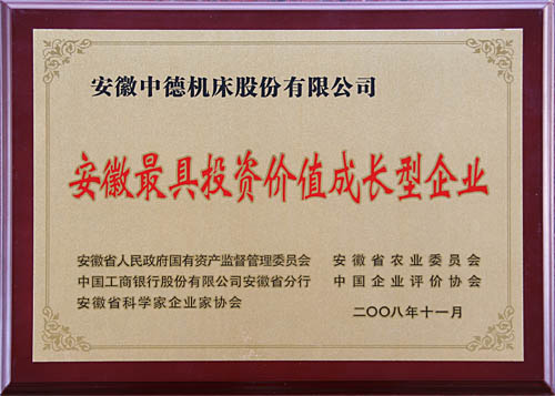 能夠進入2008年安徽最具投資價值企業(yè)的評估百強,是對企業(yè)各個方面的能力的權(quán)威肯定,因為評價結(jié)果將為各級政府決策提供參考依據(jù),為金融機構(gòu)、融資機構(gòu)的企業(yè)信貸決策提供參考依據(jù),為企業(yè)充分展示自身的成長能力、投資價值和戰(zhàn)略合作伙伴提供機會。此次進入“2008安徽最具投資價值成長型企業(yè)百強榜”對于中德機床來說,意義深遠。中德將在技術(shù)創(chuàng)新,開辟廣闊市場方面做進一步的努力。