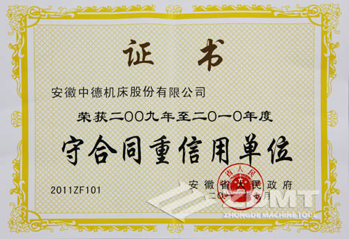 這也是我公司第三次獲得省政府授予的“守合同重信用先進(jìn)單位”稱號(hào),公司不斷發(fā)揚(yáng)“守合同、重信用”的良好傳統(tǒng),不斷探索、潛心經(jīng)營,逐漸建立、健全了一套適合市場(chǎng)規(guī)律和行業(yè)、企業(yè)自身特點(diǎn)的合同管理機(jī)制,強(qiáng)化了合同的管理,確保了合同的履行,呈現(xiàn)出合格率100%,優(yōu)良率85%以上,履約率達(dá)100%的喜人景象,取得經(jīng)濟(jì)效益和社會(huì)效益的雙豐收,贏得了社會(huì)各界的廣泛認(rèn)可,增強(qiáng)了社會(huì)大眾對(duì)“中德機(jī)床”品牌的認(rèn)知度,加速了品牌傳播、提升了品牌知名度,樹立了中德機(jī)床公司良好的社會(huì)形象。